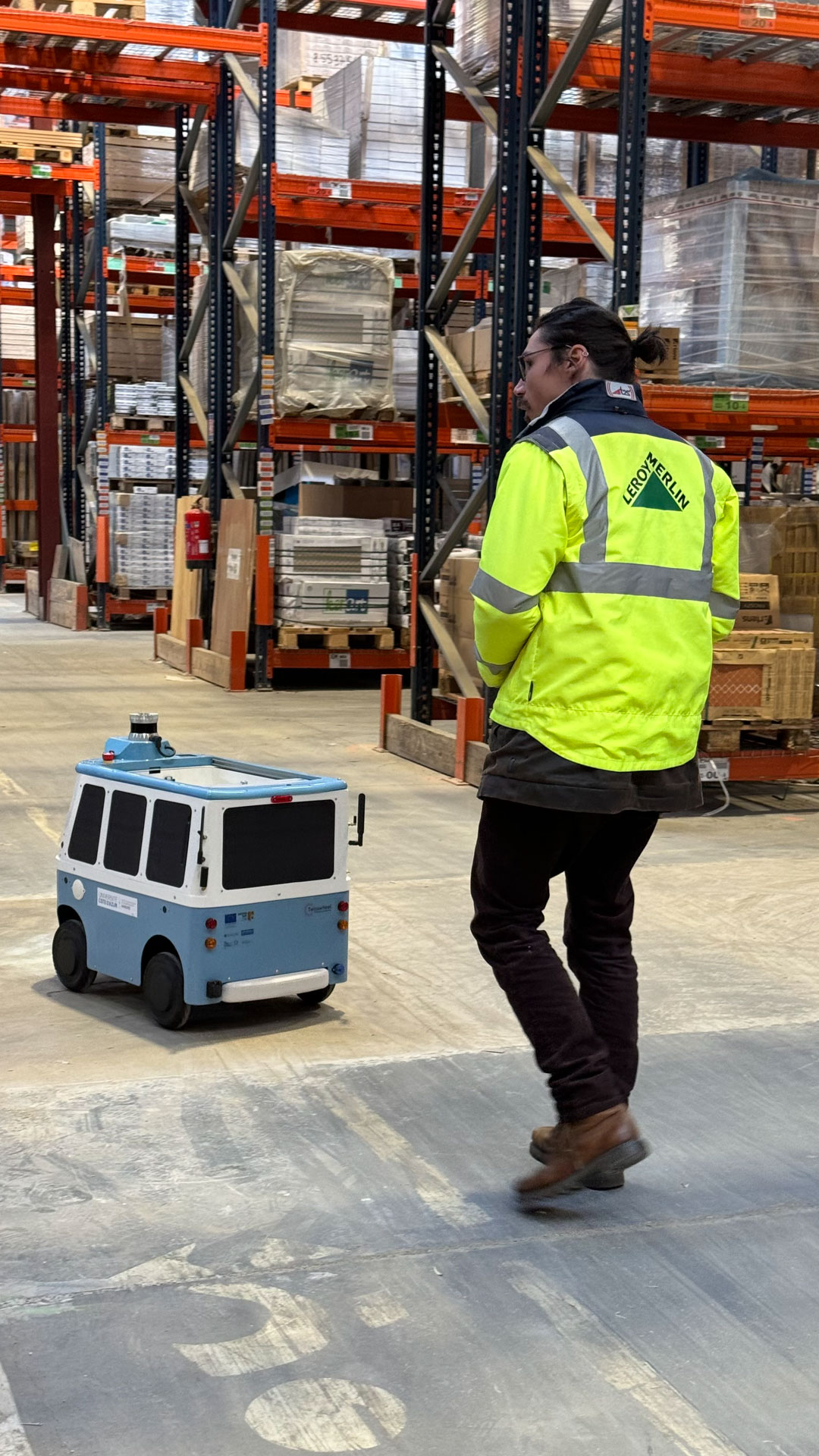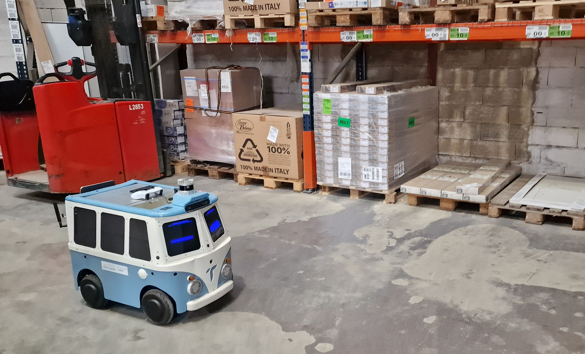 Dans le cadre des Chaires Territoires & Véhicules Autonomes et UX for Smart Life : Home & Mobility, du 24 janvier au 2 février 2024, l’IMREDD a collaboré avec Leroy Merlin Nice pour réaliser un essai pilote du robot de livraison ciTHy S du constructeur français TwinswHeel. L’expérimentation s’est déroulée au dépôt de Retrait des Marchandises de Leroy Merlin à Carros, avec pour objectif d’évaluer les capacités opérationnelles du robot dans un environnement logistique réel.