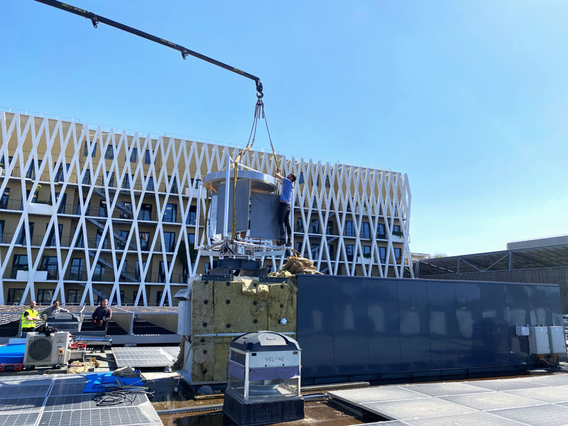 Ce dispositif compact (H : 2,5 m/ ⌀ : 2,6 m) contribuera à l’autonomie énergétique du bâtiment et s’inscrit dans l’engagement résolument durable de l’IMREDD.